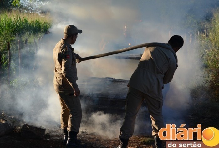 consumido pelas chamas. A Polícia Militar esteve no local e continua