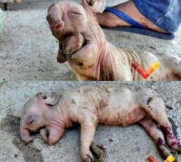 Se esse porquinho da foto acima que nasceu na Cidade de Conceição no sertão da Paraíba, assusta as pessoas pois ele não é o único por que o que nasceu em Pramaoy, no oeste do Camboja, é rosado e tem um focinho longo, além de grandes orelhas como os elefantes.O animal parece ser magro, mole e não pode abrir seus olhos devido às deformidades físicas graves.