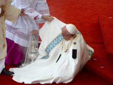 O Papa Francisco caiu durante uma missa em Cracóvia, na Polônia, nesta quinta-feira (28), segundo a Associated Press. Ele foi socorrido por padres e bispos que participavam da cerimônia no santuário de Jasna Góra, em Czestochowa. Aparentemente, ele não se machucou e continuou a celebração.