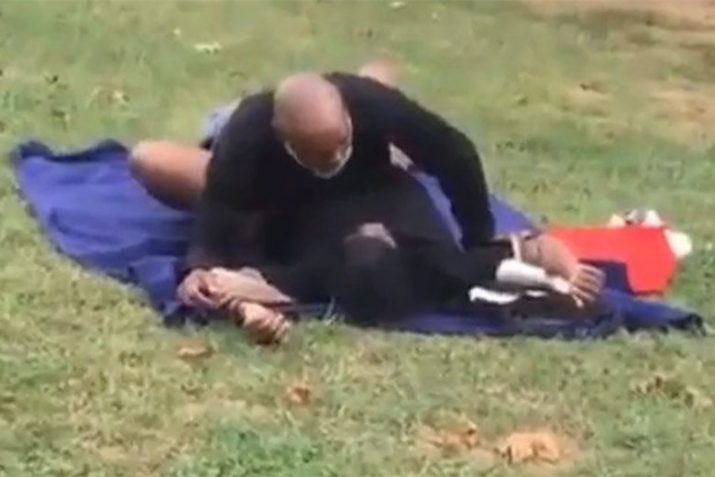Um casal foi pego fazendo sexo em um parque em plena luz do dia. Ninguém foi identificado até o momento, mas as cenas românticas — ou indecentes como alguns preferem dizer — dos pombinhos viralizaram na internet. O homem, aparentemente mais velho, aparece debruçado sobre uma mulher, com as calças puxadas para baixo.
