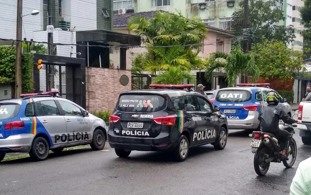 | Equipes da polícia foram até o prédio onde homem tentou matar a ex-esposa, atingiu enteada e se matou, no Recife — Foto: Reprodução/WhatsApp |